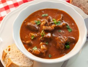 - Az olajon pirítsuk meg a vöröshagymát, dobjuk rá a húst és addig pirítsuk, amíg levet enged. Tegyük bele a fokhagymát, fűszerezzük, és adjuk hozzá a paradicsomot, étkezési paprikát. Alaposan keverjük el, majd öntsük fel sörrel (ez egy sűrű étel, inkább többször pótoljuk a folyadékot).